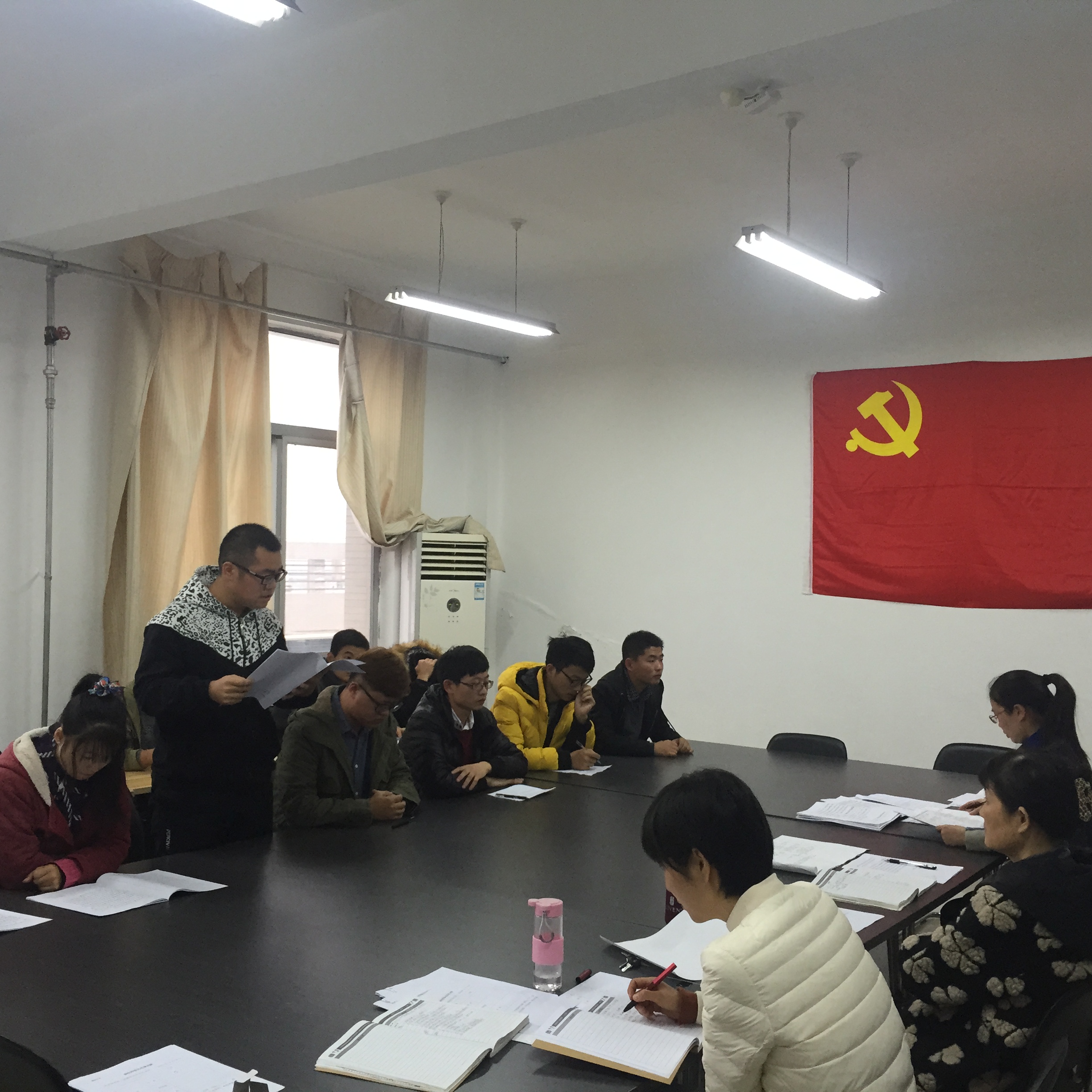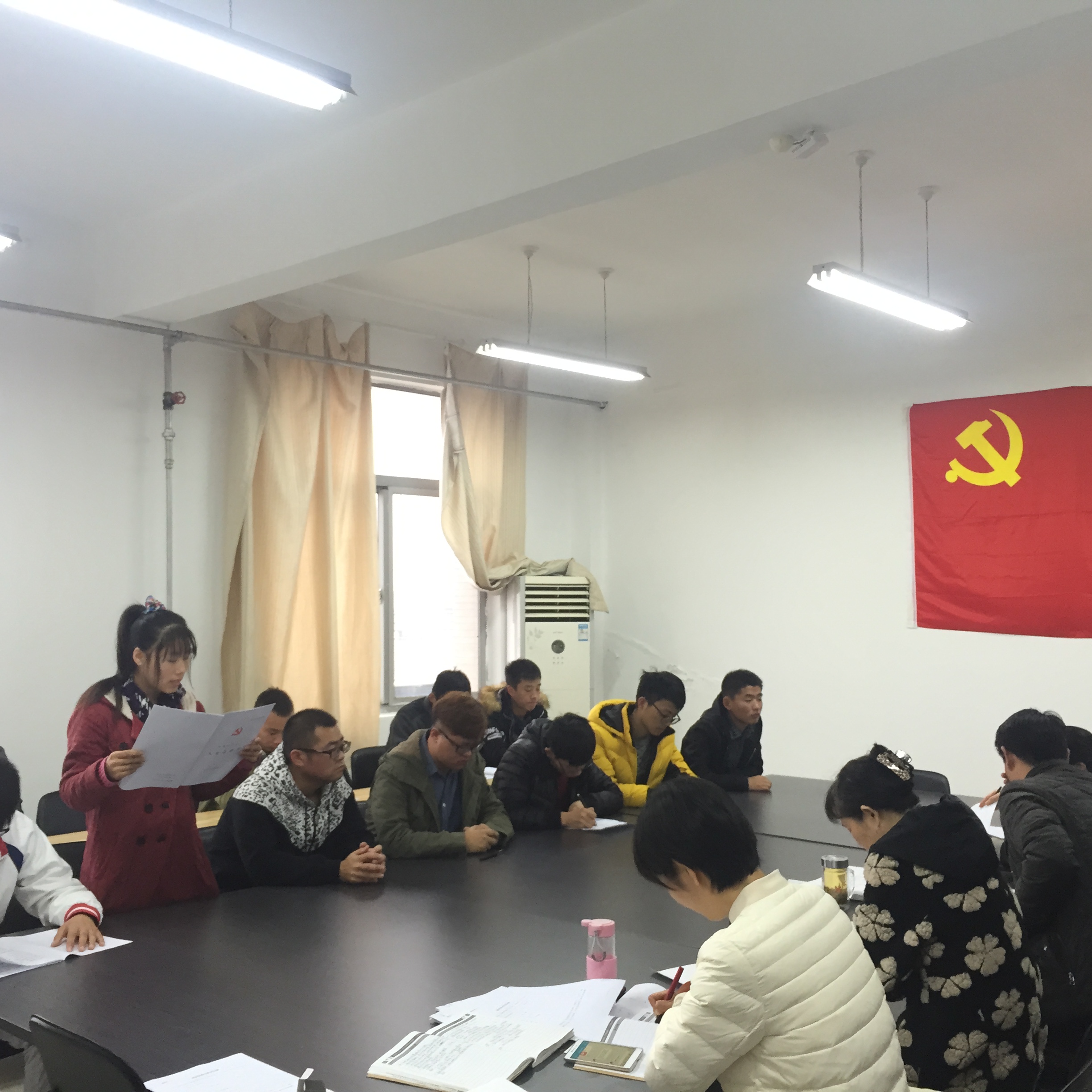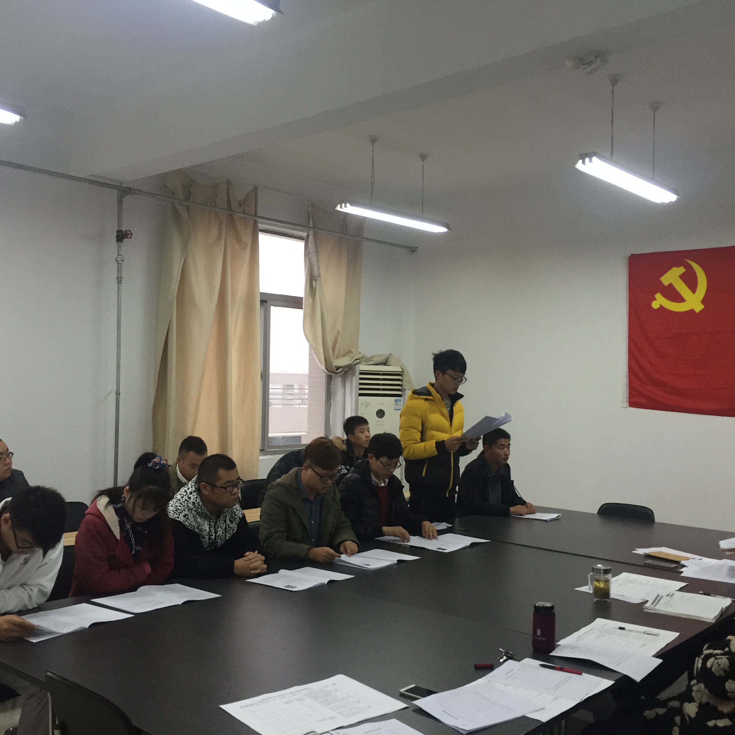 2016年11月18日上午8:30,凯发娱乐k8官网召开员工党支部党员大会,主要议程是讨论吸收孟令辉等7名同学加入党组织事宜,本支部共有党员18人,其中正式党员9人,预备党员9人;因事请假党员2人,实到党员16人,其中正式党员7人,预备党员9人,到会党员超过半数,符合党章规定人数。