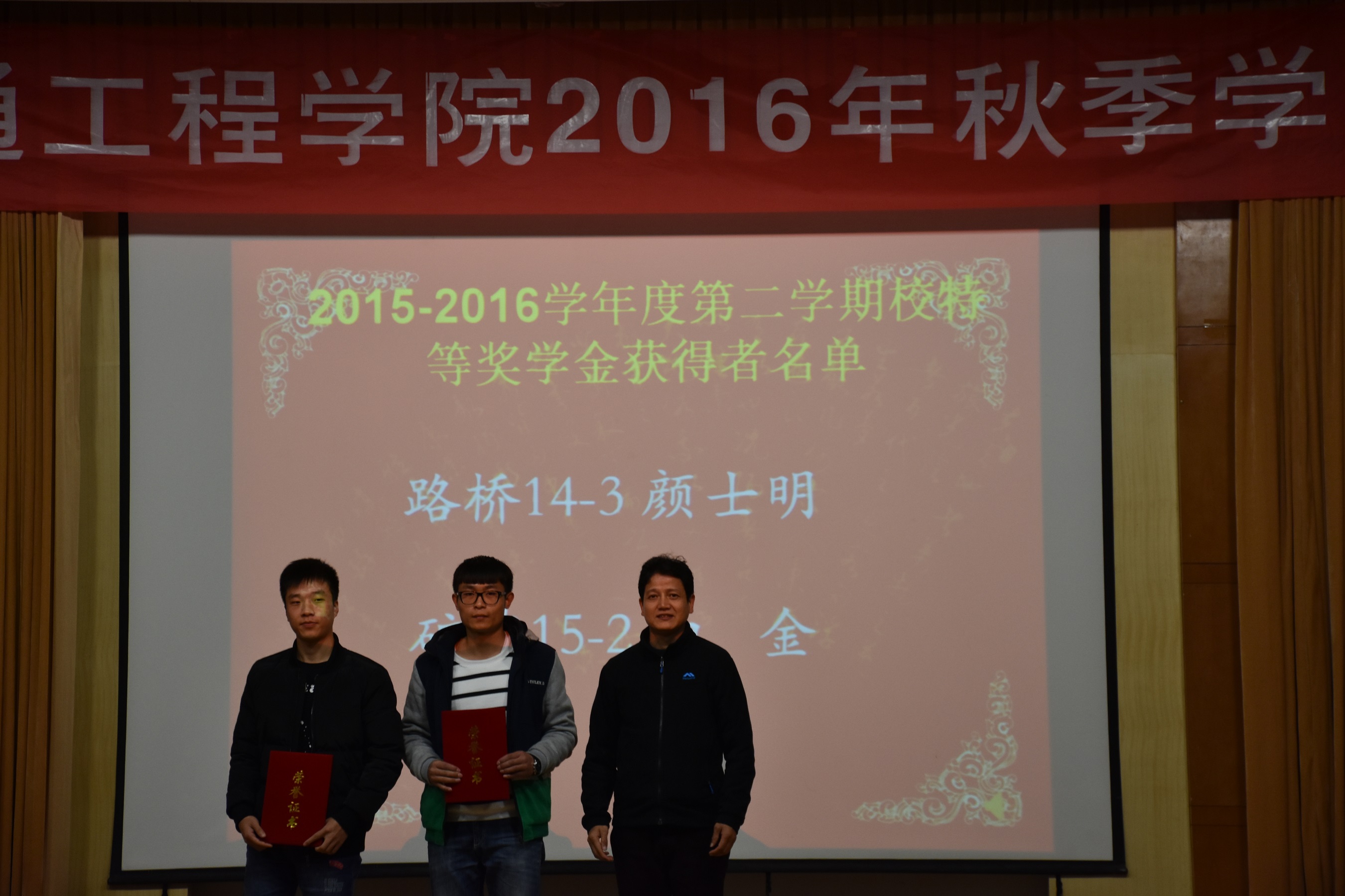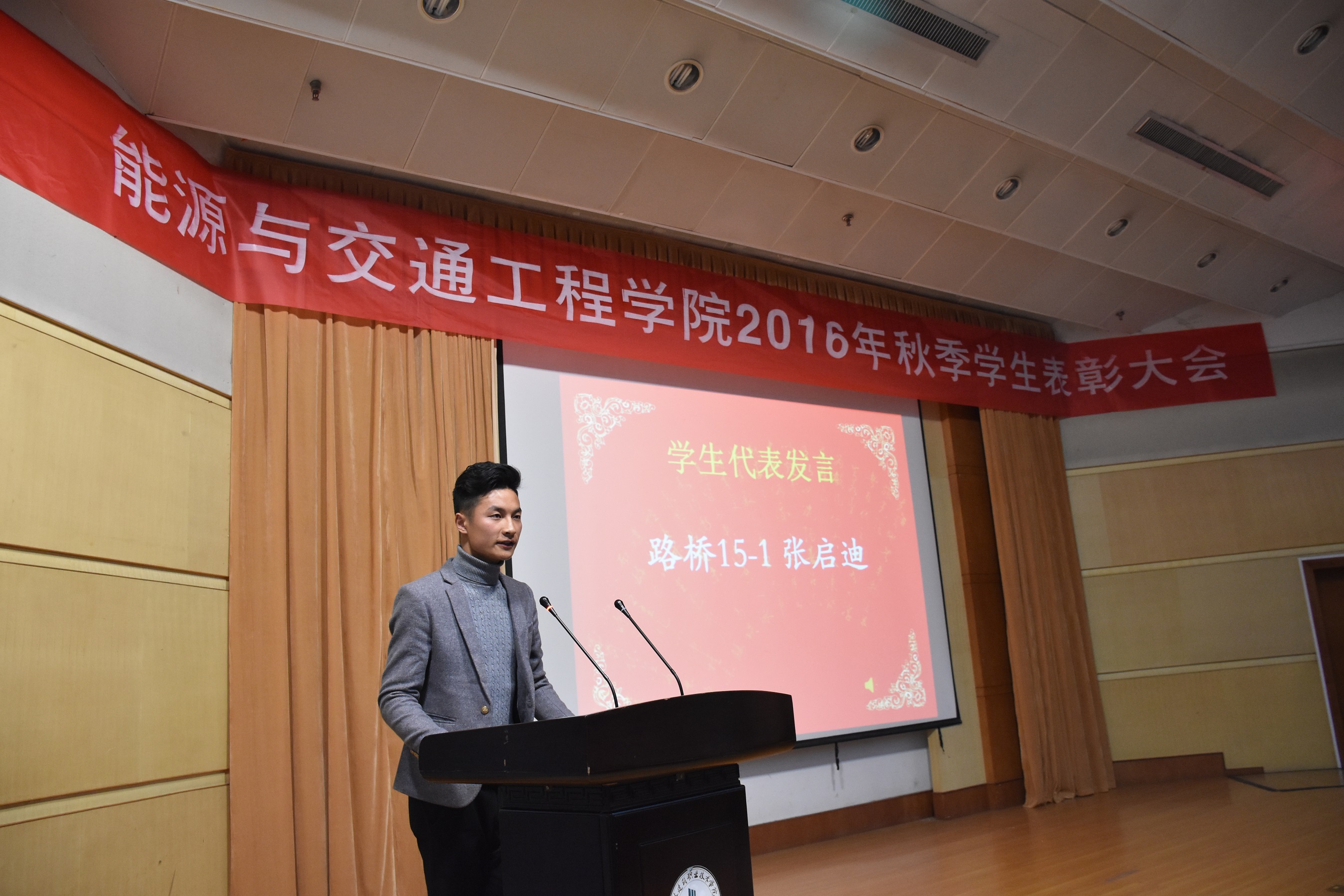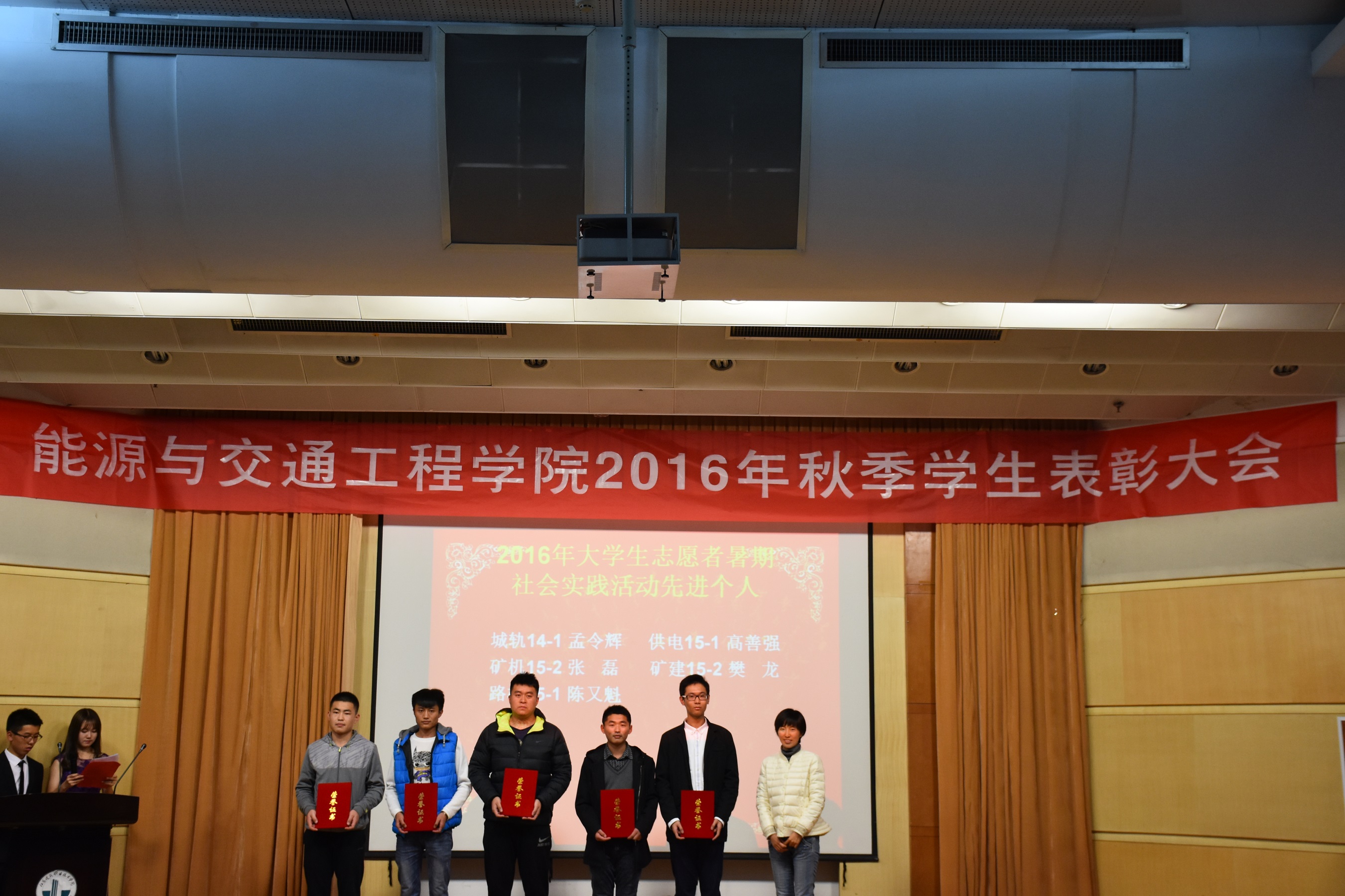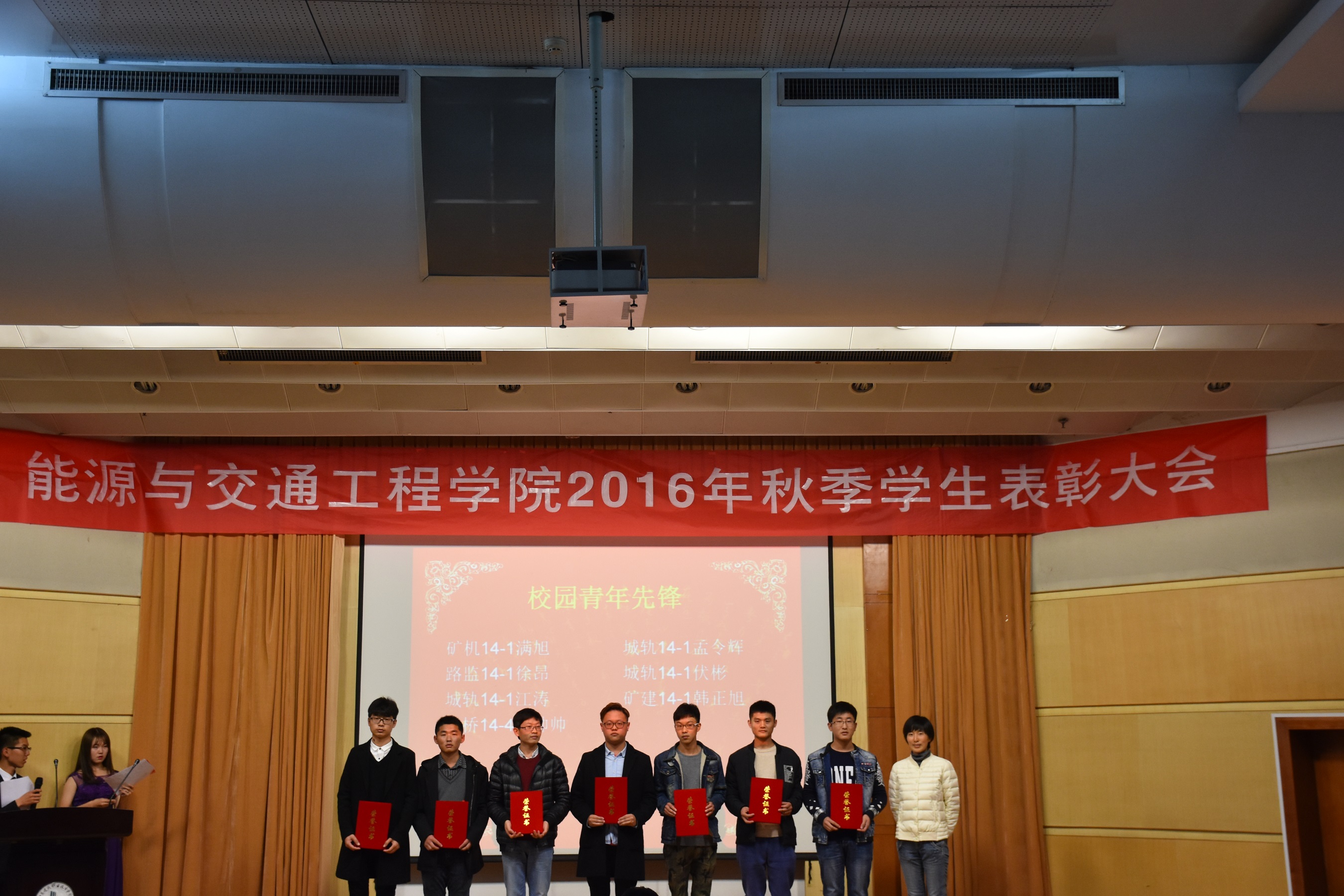 2016年11月20日晚19:00,能源与交通工程公司2016学年秋季员工表彰大会在学术报告厅举行公司党总支书记张魁老师、经理戚豹老师、党总支副书记赵阳培老师、副经理靳会武老师及专业负责人、全体专兼职辅导员受邀出席本次大会,2016级新生、大二大三班级代表共计400余人参加表彰大会