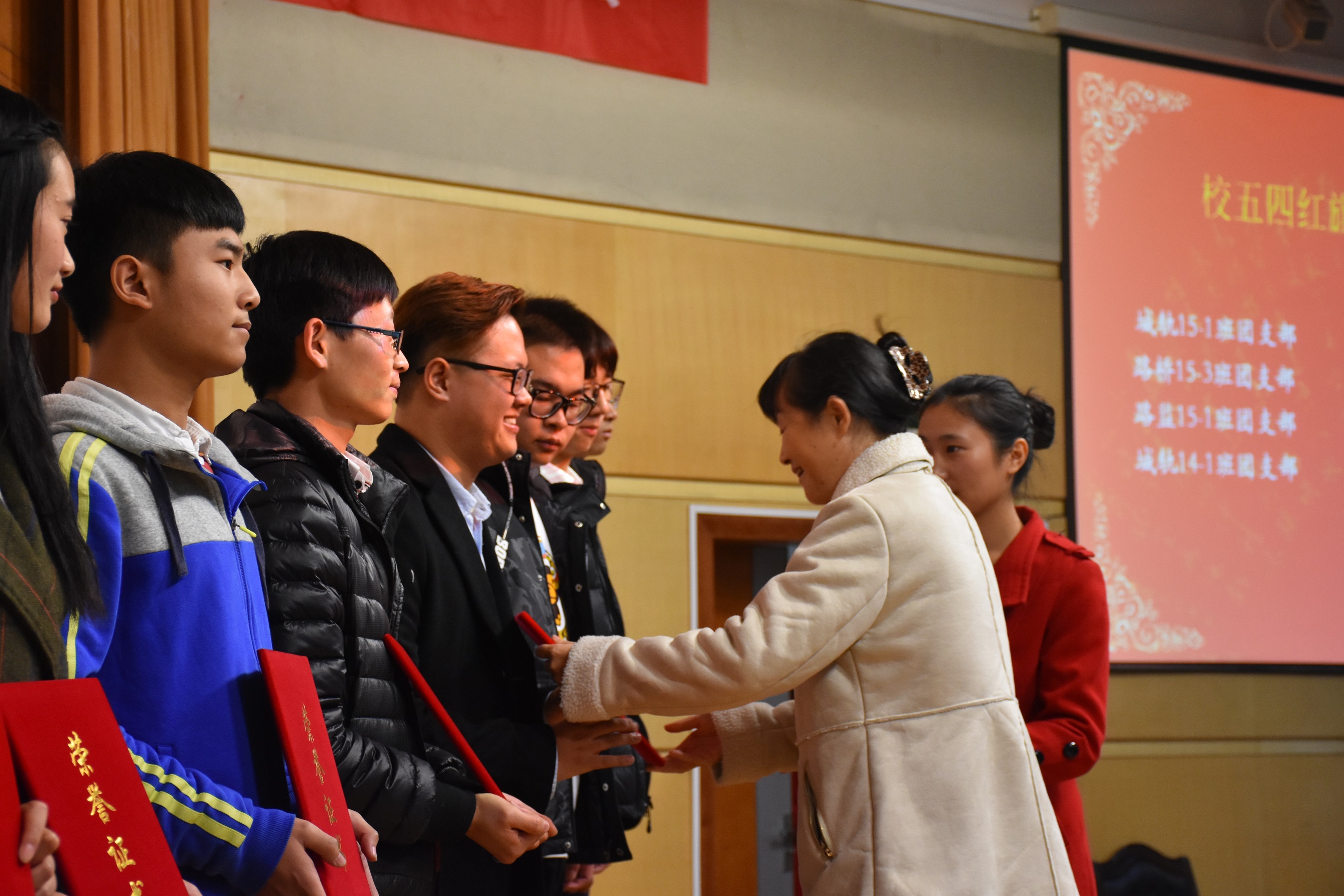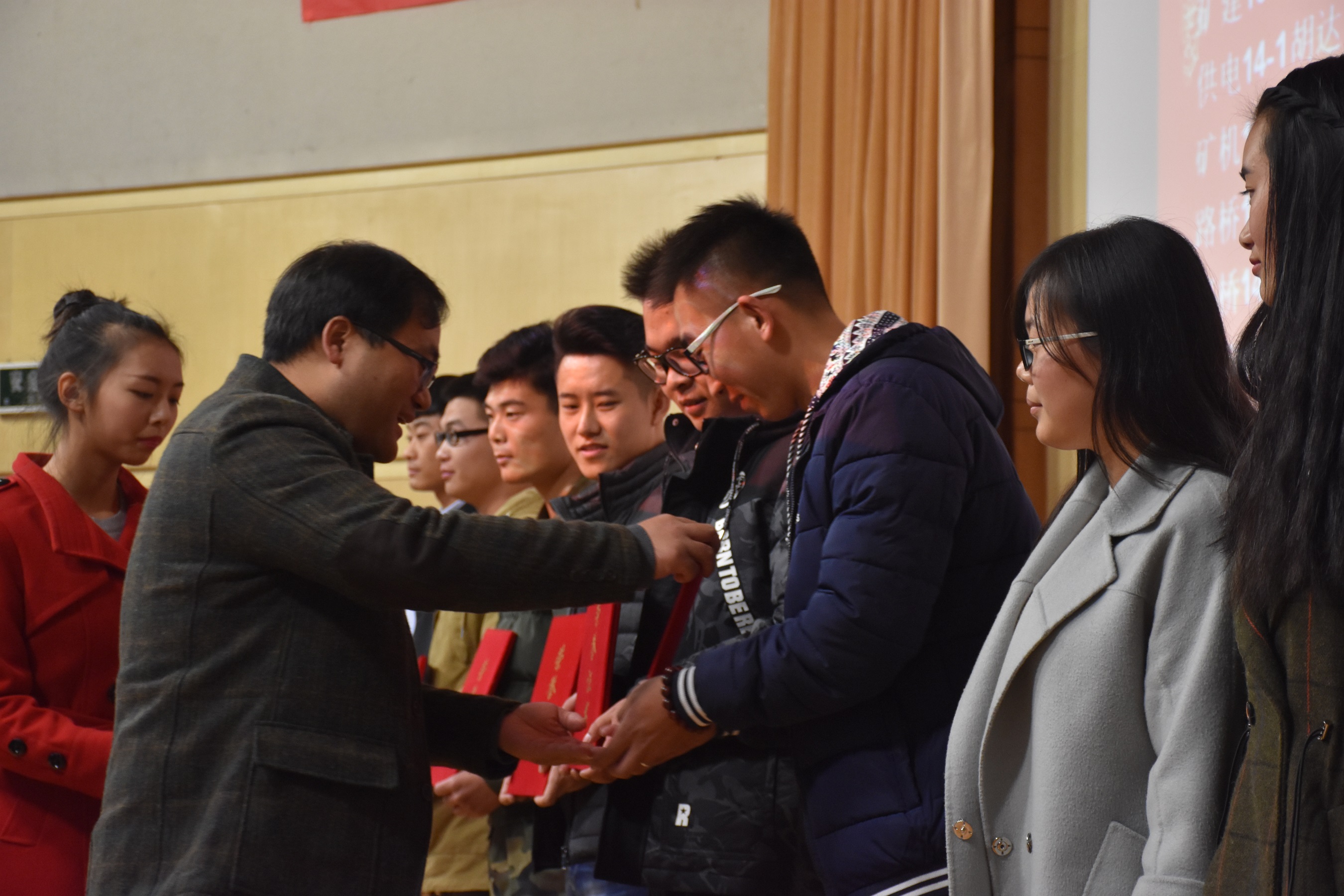 公司党总支副书记赵阳培老师首先代表学院致开幕辞,班主任代表周磊老师及员工代表张启迪同学作为代表发言。本次表彰大会设有“国家奖学金”、“国家励志奖学金”、“省三好”、“省优干”等共19个奖项,312个个人奖10个团体奖。院领导为先进集体和个人代表共计125人进行表彰并颁发了荣誉证书