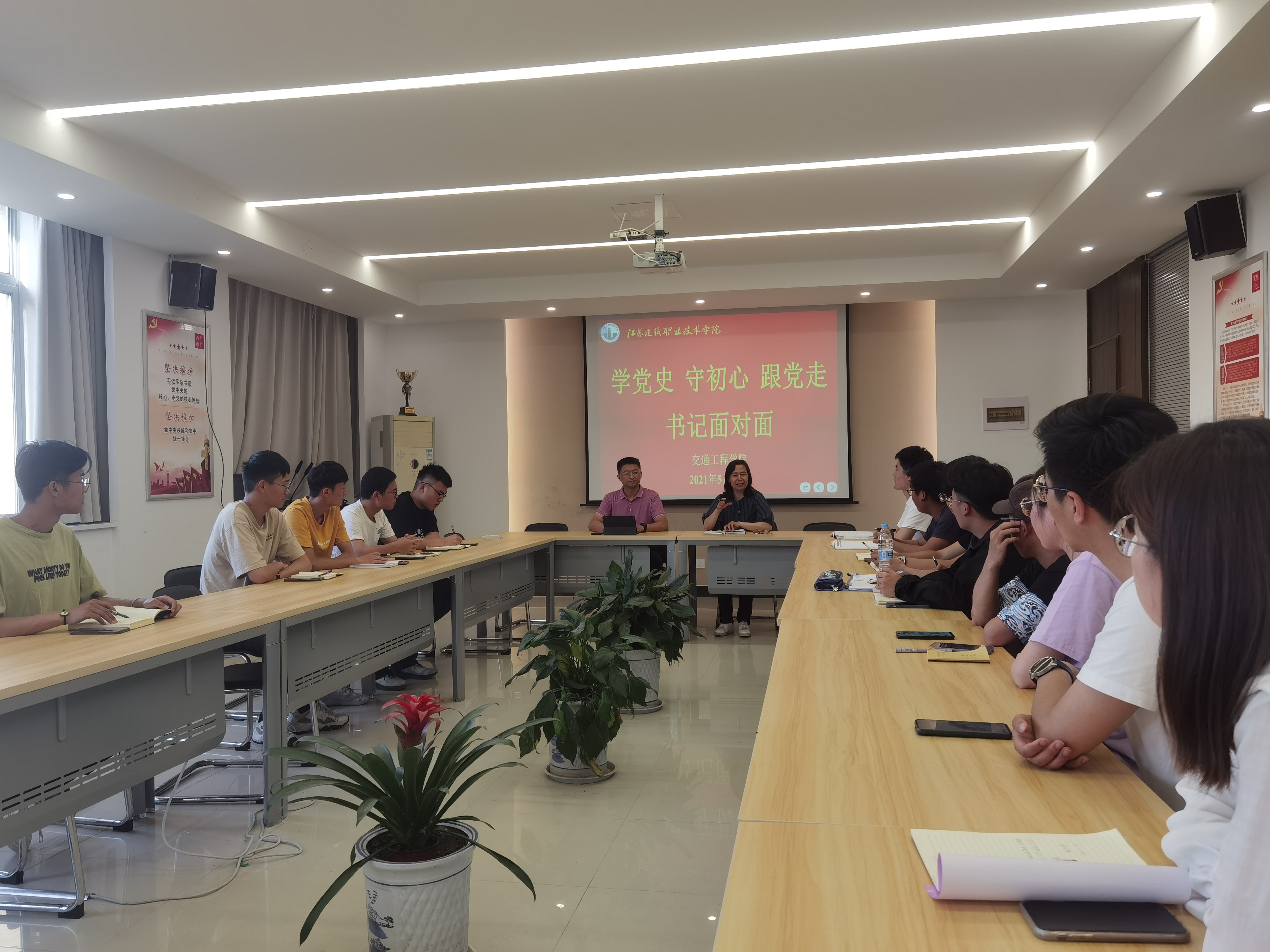 进一步扎实推进党史学习教育,引导广大师生党员牢记初心使命、践行责任担当,5月28日,凯发娱乐k8官网在利亚楼开展“学党史·守初心·跟党走”书记面对面活动。公司党总支书记赵武、副书记宗义江、全体辅导员、员工党员参加此次活动。